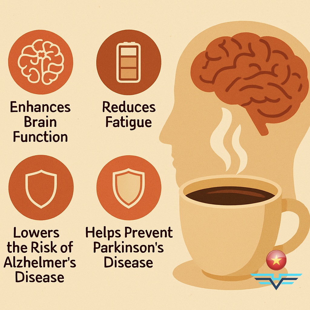 Drinking coffee in moderation—around 3–4 cups per day—can boost brain health by reducing fatigue, improving mood, and lowering the risk of Alzheimer’s and Parkinson’s disease.