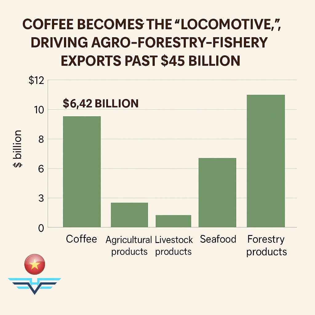 Vietnam’s agro-forestry-fishery sector continues to show resilience and strong growth despite global market volatility. Coffee’s record-high export value—now the key “engine” driving the sector—highlights both the strength of the Vietnamese coffee industry and the importance of continued investment in quality and market diversification.