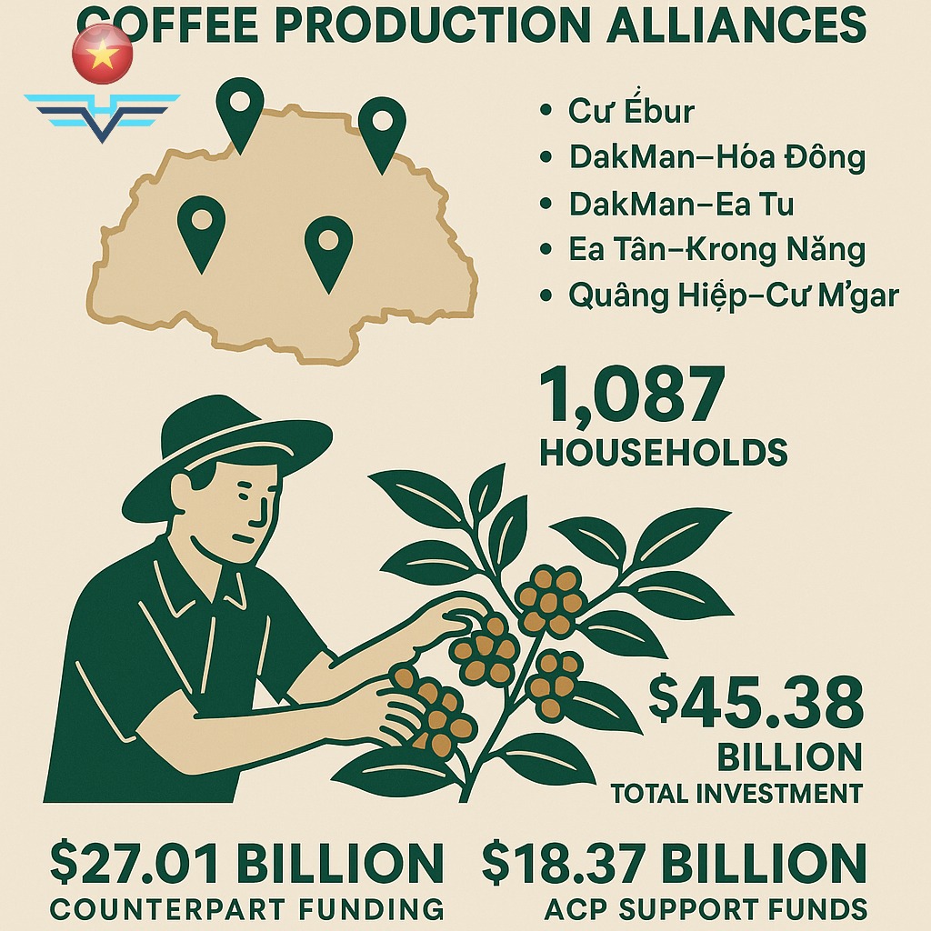 The total investment to implement these sustainable coffee alliances is 45.38 billion VND, including 27.01 billion VND in counterpart funding and 18.37 billion VND in ACP (Agricultural Competitiveness Project) support funds.