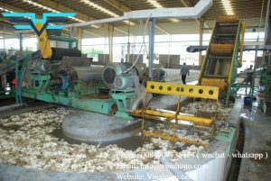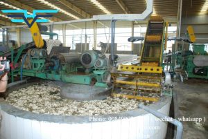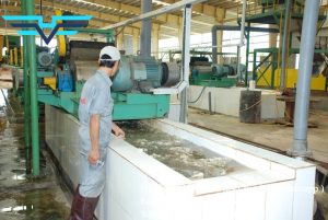 After incubation, the latex will be put on the conveyor belt into the slicer, through the stirring pool, and washing No