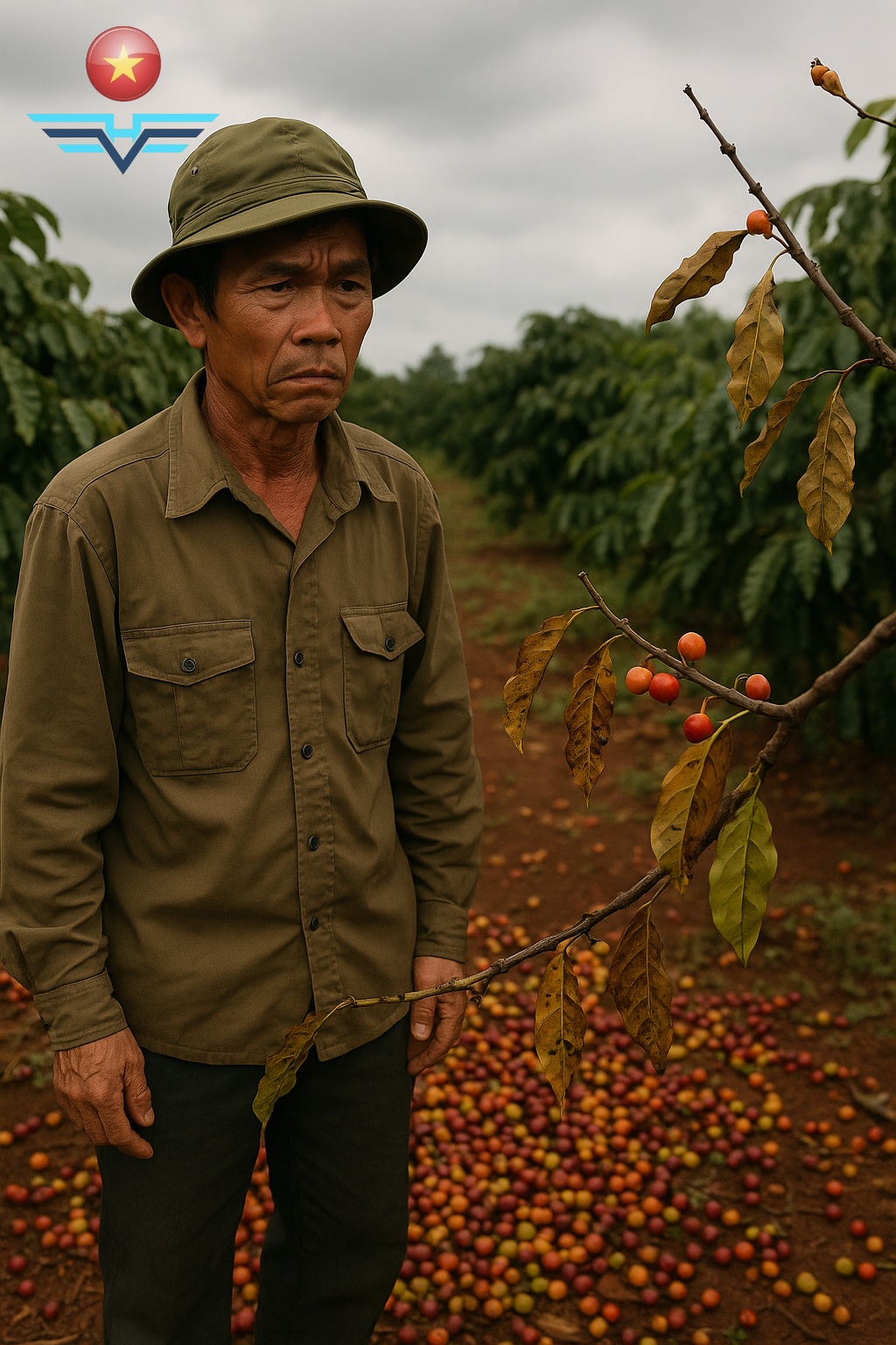 Vĩnh, who has grown coffee for over 20 years from Đắk Nông to Gia Lai, has witnessed many theft tactics: stealing beans drying in the yard, raiding bagged coffee in storage, stripping branches, even cutting entire trees to remove cherries. Thieves operate in teams with lookouts and transporters, making it difficult for the thinly stretched local security forces to respond. Farmers want to harvest fully ripe cherries for better prices, but constant risk of theft forces them to pick earlier.