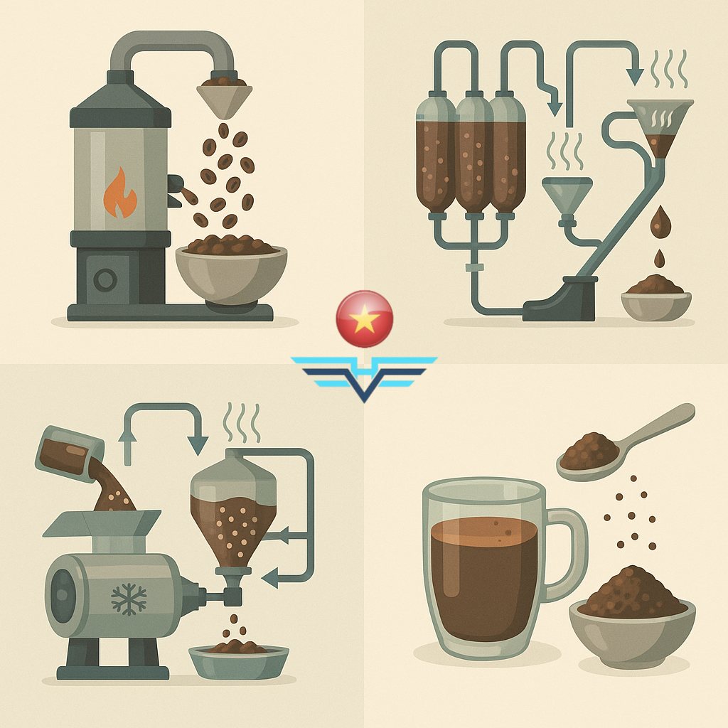 The extracted coffee liquor must then be dried to form the final instant coffee powder or granules. Two main drying methods are used: