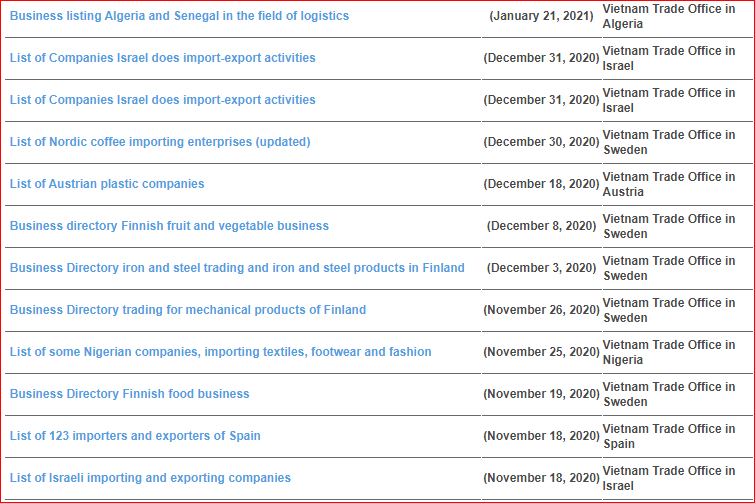 Danh sách doanh nghiệp Algeria và Senegal trong lĩnh vực hậu cầnTable of Contents |