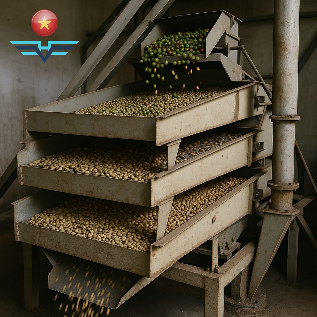 In practice, some factories still operate old grading machines whose vibration strength is imprecise—either too strong or too weak. To obtain beans of 6.3 mm size, operators often install mesh screens with hole diameters of 6.7 mm. Why? Because with these machines, if they use the correct 6.35 mm mesh, the 16-screen R1 batch will contain over 10% beans that should be classified below size 13. Customers will not accept this.
