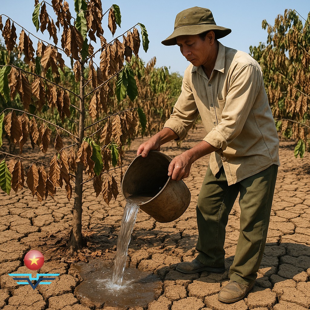 Since mid-February, relentless heat has dried up most irrigation sources, leaving farmers—especially ethnic minority households—scrambling to find water to keep their coffee plants alive.