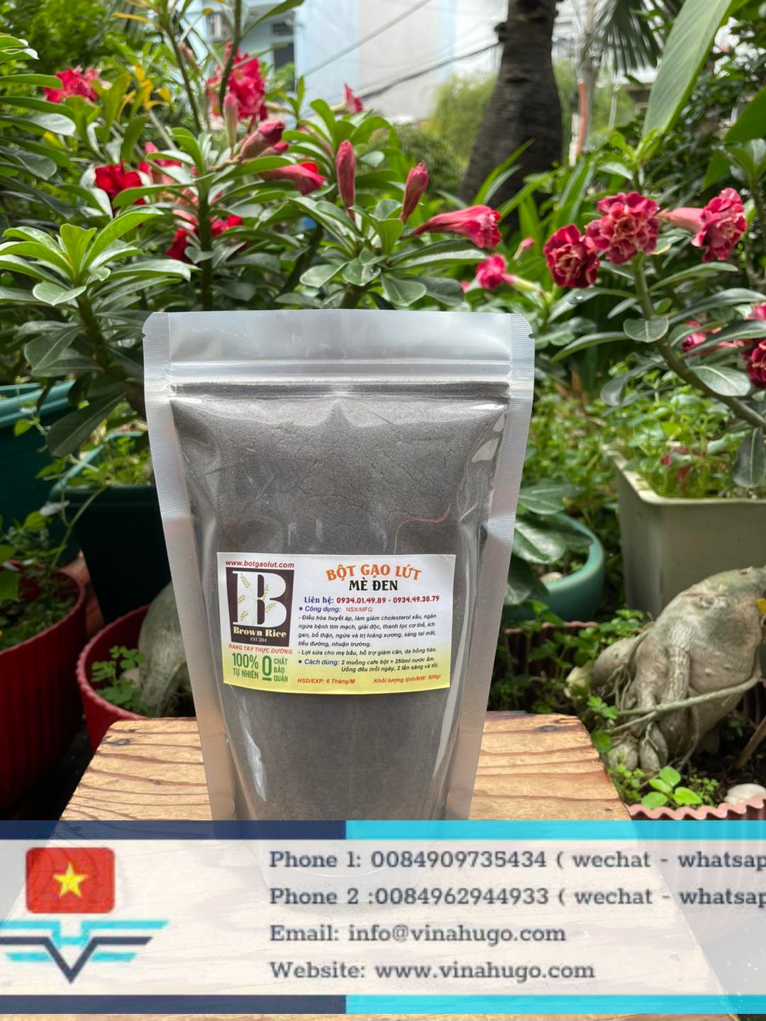 At Vinahugo, we use premium Dragon Blood Brown Rice (Gạo lứt huyết rồng) and locally sourced black sesame. The ingredients are slow-roasted to achieve a deep, nutty aroma and then ground into an ultra-fine powder that is easy to prepare and digest. It is 100% natural, vegan, and free from artificial additives.