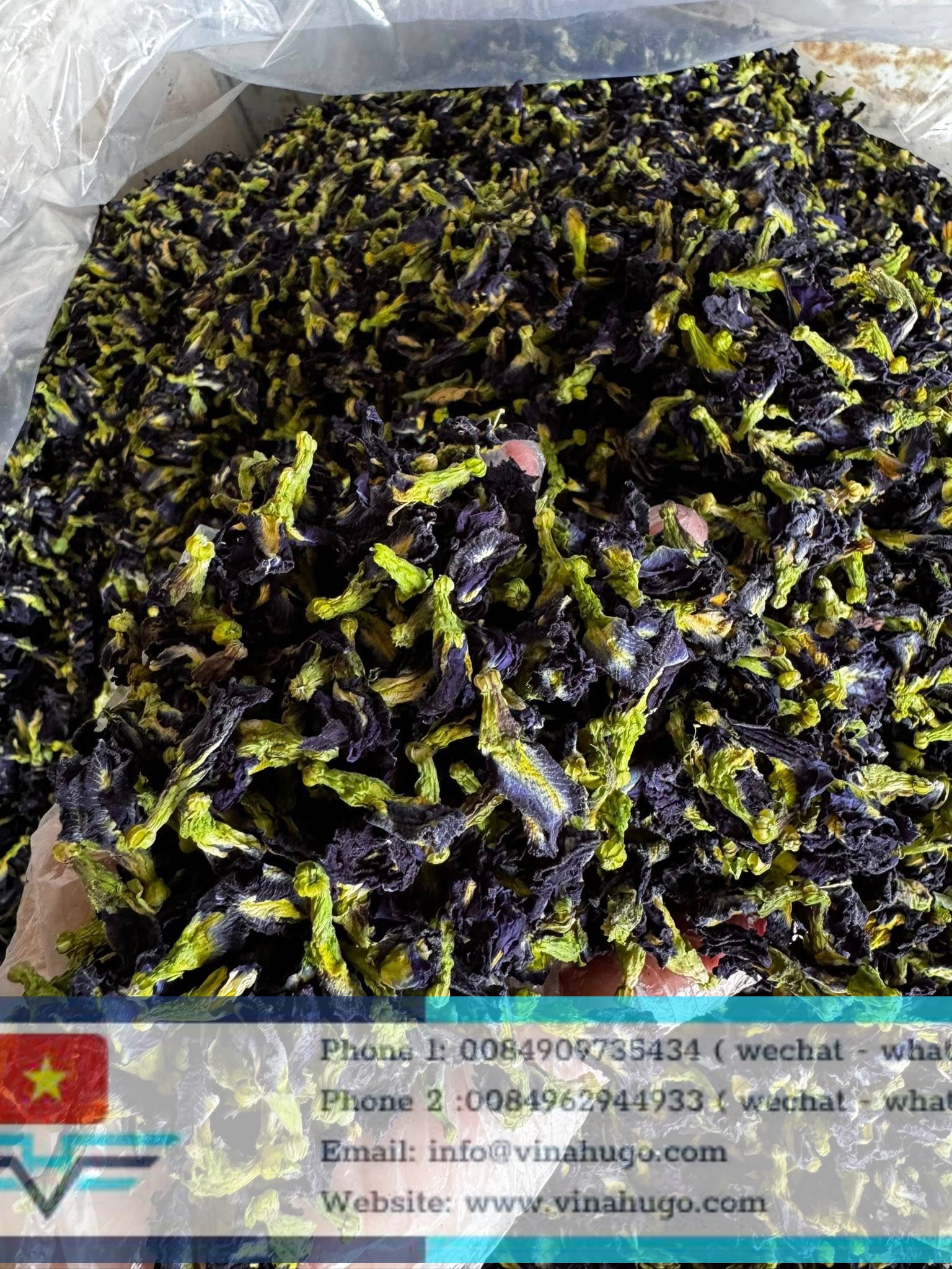 One of its most fascinating properties is its color-changing ability: the blue extract turns into a beautiful royal purple when the pH level changes (such as adding lemon juice). Vinahugo offers premium dried whole flowers and fine powder, processed with advanced drying technology to preserve the brilliant color and high antioxidant content.