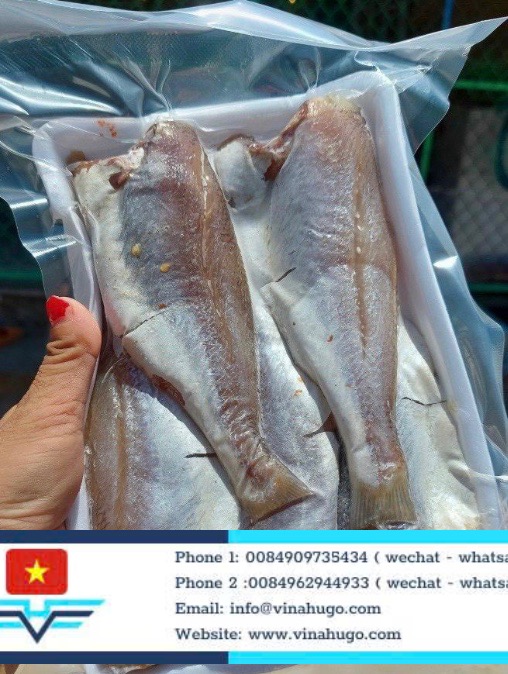 At Vinahugo, our Yellow Croakers are processed with the “One-Sun-Dried” (Khô Cá Đù 1 Nắng) or Fully Driedmethods. We select only fresh, fatty fish, scale them, remove the internal organs, and marinate them with a hint of sea salt before drying. Our process ensures that the fish remains succulent on the inside while having a perfectly preserved exterior.
