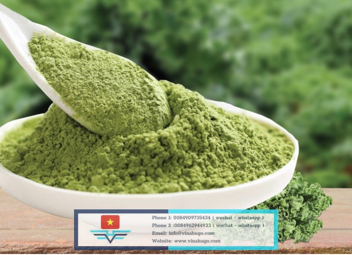At Vinahugo, our Kale Powder is produced from fresh, sustainably grown kale leaves. We utilize Cold-Drying (Heat Pump Drying) or Freeze-Drying technology to ensure the vibrant green chlorophyll, delicate enzymes, and heat-sensitive vitamins remain bioavailable. It is an essential ingredient for the modern health and wellness industry.