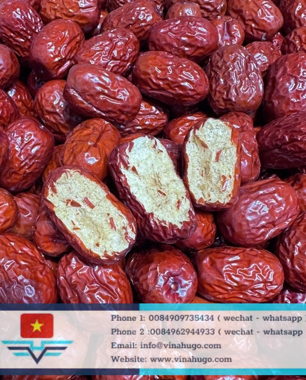 At Vinahugo, we supply premium Red Dates that are naturally sun-dried or heat-dried to preserve their deep ruby color, spongy texture, and honey-like sweetness. Our products are carefully graded by size and meat thickness to ensure the highest quality for international markets.