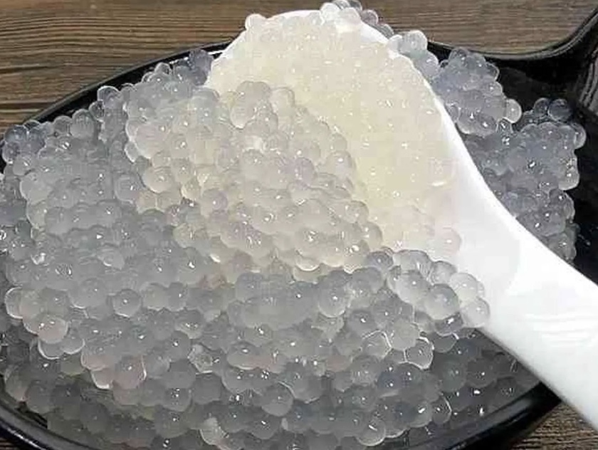 Appearance: Small, opaque white dry spheres; becomes translucent and chewy after boiling.