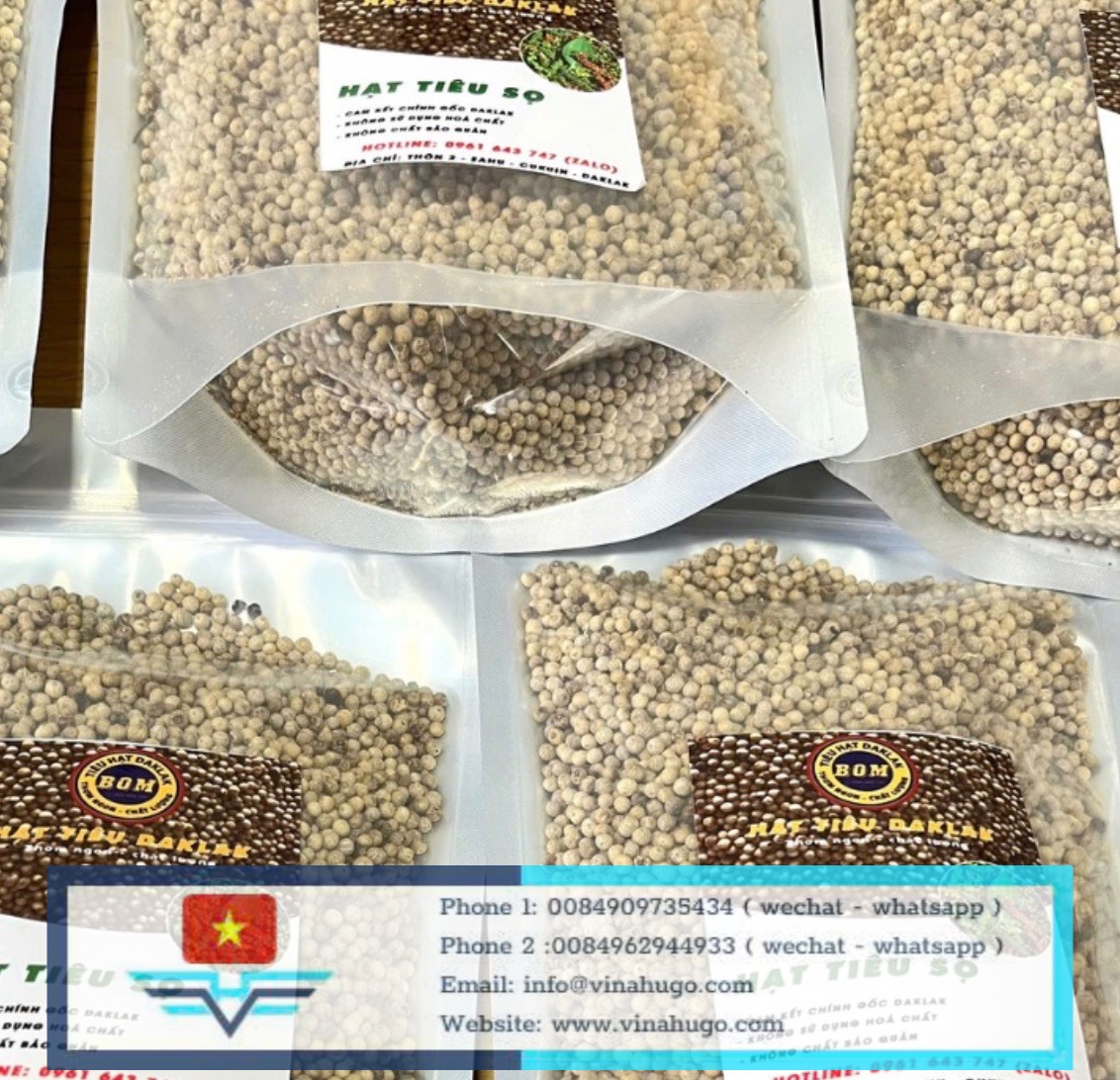 White Pepper (known in Vietnam as Tiêu Sọ) is the premium choice for culinary perfection. Unlike black pepper, white pepper is made from fully ripe peppercorns that have had their outer skin removed through a natural soaking and washing process. This reveals the smooth, creamy-white seed inside.