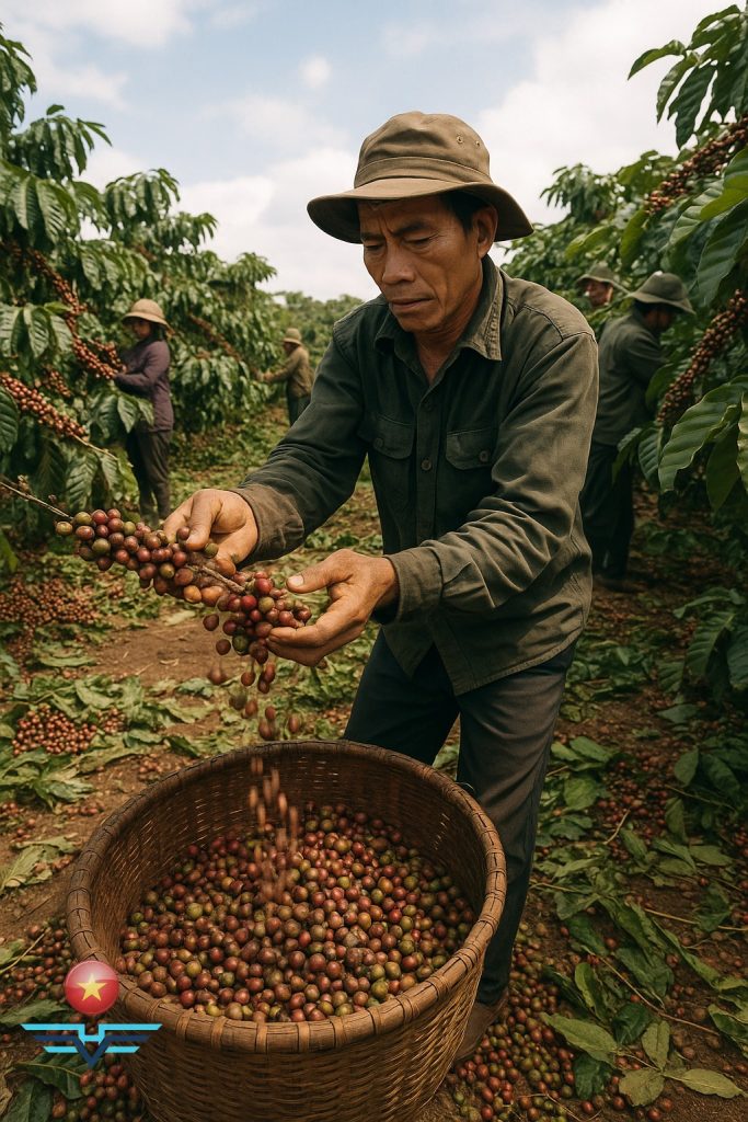 Cao Xuân Hưởng of Tam Ba Farm (Chư Pah, Gia Lai) explained: “Our 123 ha of coffee is entering harvest. We’ve hired about 30 workers to pick only the fully ripe cherries. Once the trees reach over 90 % ripeness and most local farmers have finished, we’ll recruit 200–300 workers per day. Even raising wages now might not bring enough pickers.”