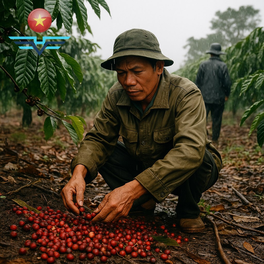 “Right now, the main difficulty is the heavy rainfall,” Mr. Chín said. “When ripe coffee isn’t picked in time and meets continuous rain, the cherries fall off. Many farms must pay workers to collect the fallen fruit, but labor costs are now extremely high—about 100,000 VND per day. A worker collecting fallen cherries can only gather about 5 kg a day, so at that rate, the profit for growers is minimal.”