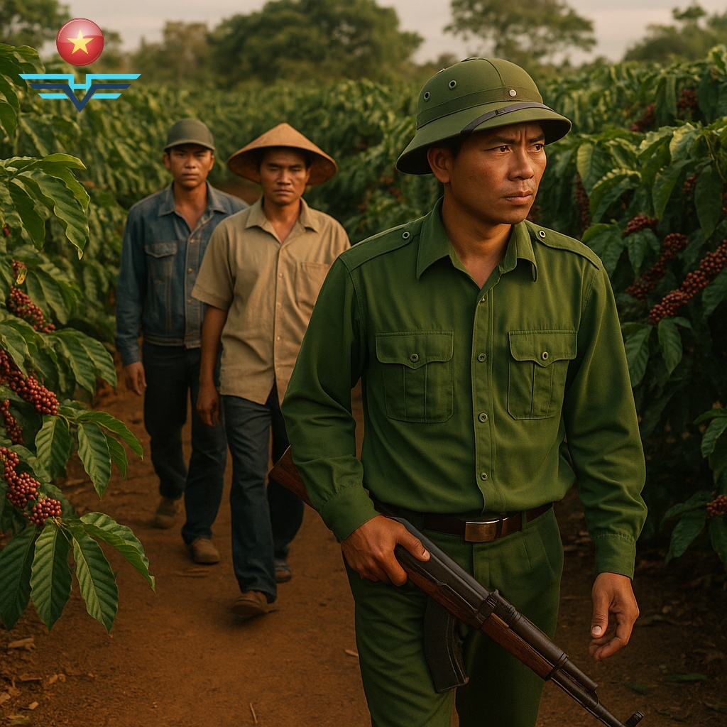 In Ia Dêr Commune (Ia Grai District), with over 1,000 hectares of coffee (nearly 700 hectares cultivated by ethnic minority households), local authorities and security forces mobilize each harvest season. Families set up tents in their fields and string electric lights to guard through the night. Village patrol teams regularly check households and warn residents to watch for thieves.