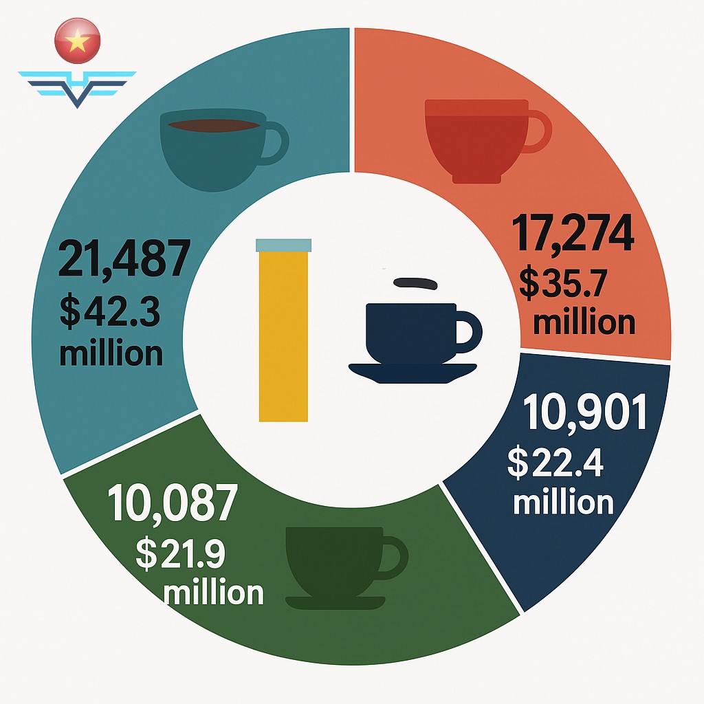 During the month, Germany remained the largest export market for Vietnamese coffee with USD 42.3 million, followed by Italy (USD 35.7 million), the United States (USD 22.4 million), and Russia (USD 21.9 million).