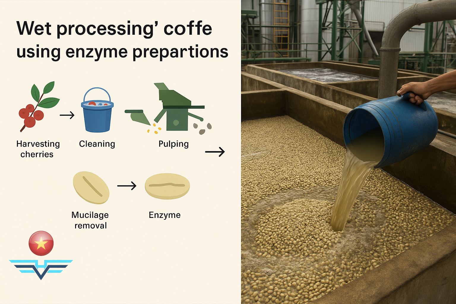 Research by the Tay Nguyen IAFST shows that using enzyme preparations in coffee processing ensures food safety and yields much higher economic efficiency compared to the traditional methods of natural fermentation and mechanical demucilaging.