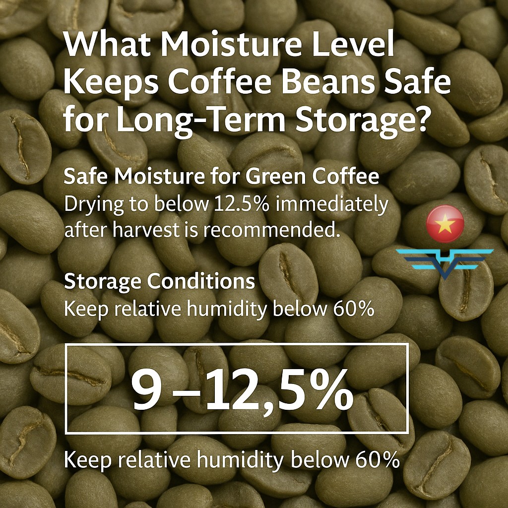 When the surrounding air humidity is about 70 %, the beans naturally stabilize at around 12.5 % moisture. For this reason, exporters typically dry green coffee to 9 – 12.5 % (±0.35 %), which is the industry’s standard buying and selling range.